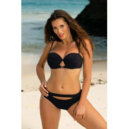Dvojdielne plavky z elastickej talianskej tkaniny Carvico Tessuti. Obsahuje podprsenku bandeau, ktorá zmyselne tvaruje a zväčšuje prsia, a spodný diel, ktorý opticky predlžuje nohy. Podprsenka sa zapína na chrbte, ramienka nie sú odopínacie. Nohavičky so sexi rázporkom na prednej strane.