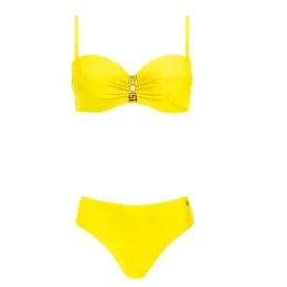 Dámske dvojdielne plavky Gold 1 730CH1 21 SELF - žltá farba - vyrobené z príjemného elastického materiálu - tepelne tvarované - košíčky sú vystužené kosticami - medzi košíčkami zdobené - nastaviteľné ramienka - klasický strih plaviek - rýchloschnúci materiál, odolný voči chlóru a slnku