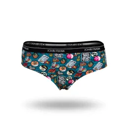 Dámske nohavičky strihu hipster od značky John Frank z vysokého podielu bavlny. Nohavičky s módne spracovaným potlačou sú veľmi príjemné na dotyk a pohodlné pri nosení. Jemná, stredne široká guma v páse má okolo logo John Frank. Do vnútorného dielu je zapracovaný bavlnený klin pre komfortné nosenie. Zlaďte sa v kolekcii ON & ONA, dámske nohavičky aj pánske boxerky nájdete u nás v jednom dizajne, buďte IN s partnerom.