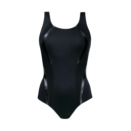 Dámske jednodielne plavky Atlantic sport 34LA2 23 SELF - čierne - vyrobené z kvalitného materiálu - jemne vystužené košíčky - farebné vložky na bokoch - širšie ramienka s reguláciou - rýchloschnúci materiál, odolný voči chlóru a slnku