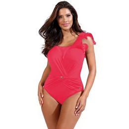 Dámske jednodielne plavky Canoy 22 1006A1 2 SELF - ružové - vyrobené z kvalitného mikrovlákna - penové košíčky bez kostice - vpredu zdobené riasením - neodnímateľné ramienka