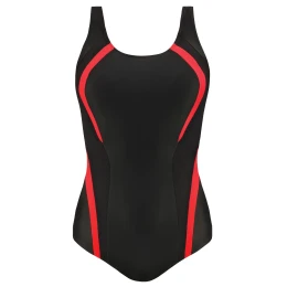 Dámske jednodielne plavky Atlantic sport 34A1 49 SELF - čierne - vyrobené z kvalitného materiálu - jemne vystužené košíčky - farebné vsadky na bokoch - širšie ramienka s reguláciou - rýchloschnúci materiál, odolný voči chlóru a slnku