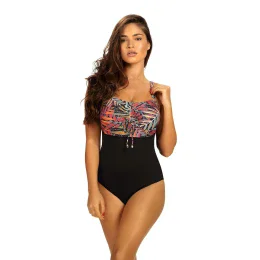 Dámske jednodielne plavky Palermo 8 S684PA8-2 čierne s farebným vzorom - Self