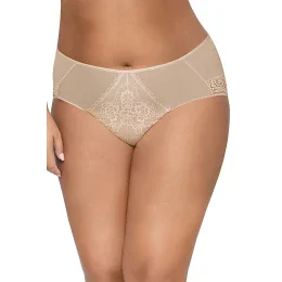 Dámske nohavičky 1824/1 Venus beige AVA - béžová farba - klasický strih - z čipky s kvetinovým motívom - zdobené vsadkami z jemného tylu Zloženie materiálu: 91% polyamid + 5% bavlna + 4% elastan