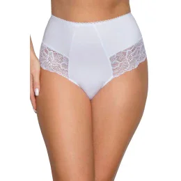 Dámske nohavičky 187 white BABELL - biela farba - z vysoko akostnej bavlny - vyšší pás - boky plné - zadná časť hladká - zdobené azúrovou čipkou na prednej časti