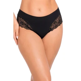 Dámske nohavičky 194 black BABELL - čierna farba - z veľmi kvalitnej a jemnej bavlny - vyšší pás - zdobená efektnou čipkou s kvetinovým motívom