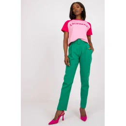 Dámske nohavice s vysokým pásom, zipsom a gombíkmi. Vrecká na bokoch. Pás je súčasťou dodávky.