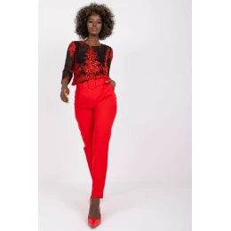Dámske nohavice s vysokým pásom, zipsom a gombíkmi. Vrecká na bokoch. Pás je súčasťou dodávky.