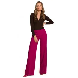 Dámske nohavice môžu byť ešte ženskejšie? Vďaka širokým rozšíreným nohaviciam, ktoré sa dotýkajú zeme, a priliehavému strihu s nízkym pásom vyzdvihnú to najlepšie z vašej postavy. DETAILY VÝROBKU: tkaná látka rozšírené nohavice široké nohavice zapínanie na gombík a zips vpredu šikmé vrecká Naša modelka meria 174 cm a nosí veľkosť S