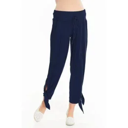 Módne tehotenské nohavice vyrobené z elastickej viskózy v tmavo modrej farbe.