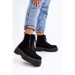 Dámske trapézové topánky z ekokože. Stoja na hrubej platforme a plochom podpätku. Zvršok po členky. Zapínanie na zips a ozdobné šnúrky. Zaoblená špička. Zosilnená päta. Mäkká stielka z ekokože pre pohodlie pri nosení. Určite by ste ich mali mať!