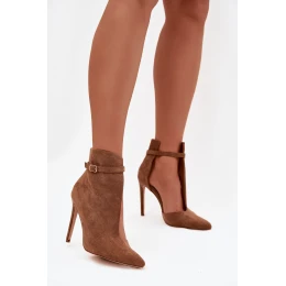 Dámské kotníkové boty na jehlovém podpatku z eko semiše tmavě béžové Amalundi