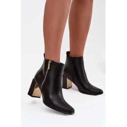 Dámské boty vyrobené z ekologické kůže jsou elegantní volbou, která kombinuje klasiku s moderním akcentem. Model na stabilním sloupkovém podpatku zajišťuje pohodlí při nošení a jistotu kroku, zaoblené špičky dodávají celku jemný, ženský charakter. Obuv je zapínána na praktický zip a dodatečný ozdobný zip jí dodává stylový vzhled. Zrcadlový prvek na podpatku je jemný detail, který upoutá pozornost. Ideální boty na každý den i na speciální příležitosti – skvěle doplní jak formální, tak casual stylizace. Při výběru velikosti se prosím řiďte tabulkou velikostí. Při výběru velikosti se řiďte tabulkou velikostí.