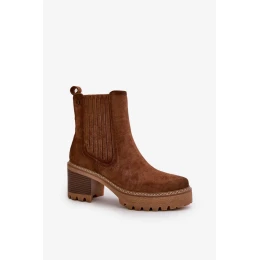 Dámske členkové topánky na podpätku Eco Suede Insulated Dark Brown Nevitas