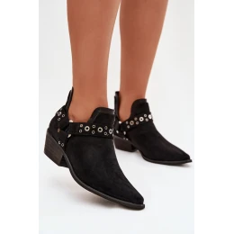Stylové dámské kotníkové boty vyrobené z eko semiše. Umístěné na nízkém, řezaném podpatku, který zajišťuje stabilitu a pohodlí při nošení, a špičaté nosy opticky zeštíhlují nohu. Vrchní část s dekorativními pásky a efektními výřezy dodává módní, originální charakter. Nárt na šněrování usnadňuje rychlé obouvání, takže boty jsou vhodné jak pro každodenní nošení, tak pro elegantnější stylizace. Při výběru velikosti se řiďte tabulkou velikostí.