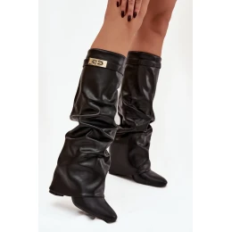 Dámské Kozačky Na Podpatku S Ohnutým Žíním A Zlatým Detalem Černé Diorna
