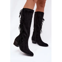 Dámské kozačky na podpatku s třásněmi zateplené černé Firlina