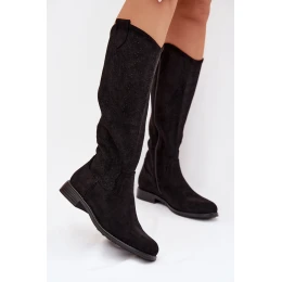 Dámské kozačky s otevřeným vzorem na nízkém podpatku S.Barski HY61-8022 Černé