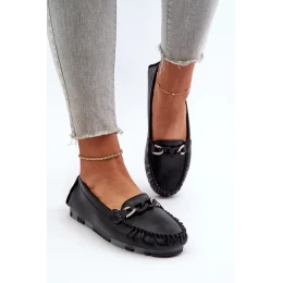 Dámske kožené mokasíny s ozdobou, čierne S.Barski
