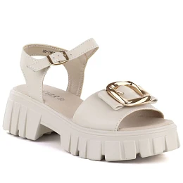 Dámske kožené sandále na platforme s béžovým zdobením Vinceza 26-79611