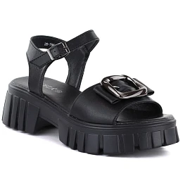Dámske kožené sandále na platforme so zdobením čierne Vinceza 26-79611