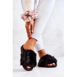 Dámske kožušinové papuče DZ821 Black - Kesi
