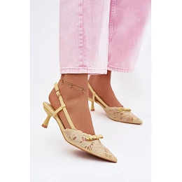 Dámské krajkové sandály na podpatku s mašlí Žluté Maribelle
