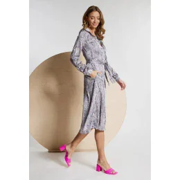 Dámske dlhé letné šaty s dlhými rukávmi, zaväzovaním v páse, zapínaním na gombíky.