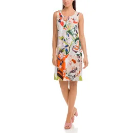 Dámske letné šaty s farebnou kvetinovou potlačou na béžovom podklade, vyrobené z kvalitného materiálu a navrhnuté podľa najnovších trendov.
