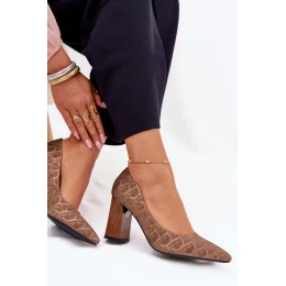 Dámske lodičky na podpätku 62254 Hnedý vzor - VINCEZA