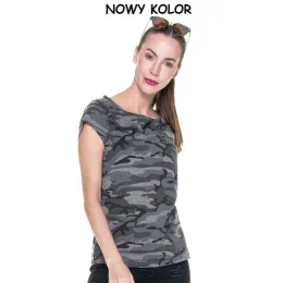 Dámske tričko ušité z hladkého materiálu single jersey s tlačeným maskáčovým vzorom. Tričko má dvojité švy a pevné lem. Gramáž: 170g / m2. Zloženie: 100% poločesaná bavlna.