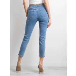 Modré dámske nohavice s dierami .