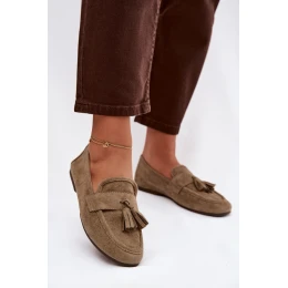 Ploché dámské mokasíny vyrobené z eko semiše jsou stylovou a pohodlnou volbou na každý den. Vepředu jsou dekorativní třásně a zavázání ve tvaru mašle. Měkký materiál zajišťuje pohodlí při nošení a plochá podrážka činí tento model ideálním pro každodenní použití. Mokasíny skvěle doplní jak klasické, tak i volnější stylizace. Při výběru velikosti se řiďte tabulkou velikostí.