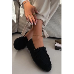 Dámské mokasíny s šněrováním a třásněmi Černé Glorina