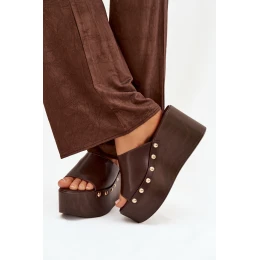 Dámské nazouváky na platformě s nýty čokoládové Mareline