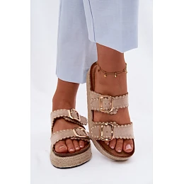 2. Dámské nazouváky na platformě s pletením zlaté přezky a cvočky béžové