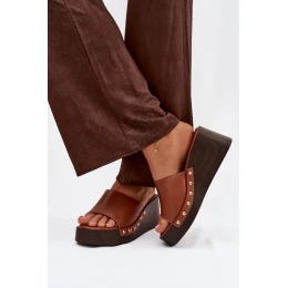 Dámské nazouváky na platformě se zlatými přezkami camel Arionne