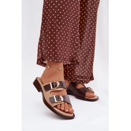 Dámské nazouváky se zlatými sponami béžovo-hnědé Danelle