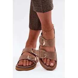 Dámské nazouváky z imitace semiše se zlatými přezkami Khaki Averia