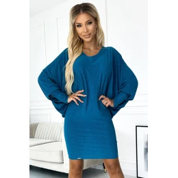 402-3 Netopierie šaty s výstrihom - morská farba s trblietkami