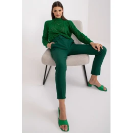 Dámske nohavice s vysokým pásom, zipsom a gombíkmi, vrecká na bokoch, opasok.