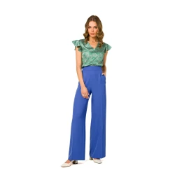 Široké nohavice s tvarovaným zopnutým pásom, elegantné a šik. Nohavice so skrytým zipsom a bočnými vreckami.