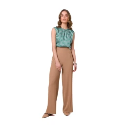 Široké nohavice s tvarovaným zopnutým pásom, elegantné a šik. Nohavice so skrytým zipsom a bočnými vreckami.