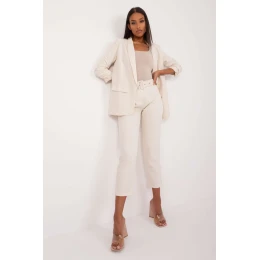 Elegantné obleky z hladkého materiálu, väčšinou z polyesteru. Sú ideálne na rôzne príležitosti, cez deň, do práce aj na formálnejšie udalosti. Vďaka vysokému pásu poskytujú pohodlie a štýlový vzhľad. Jednoduché nohavice majú klasický vzhľad a zapínanie na zips a gombík zaručuje pohodlné nosenie. Sú tiež vybavené zapínaním na opasok a praktickými vreckami, vďaka čomu sú nielen estetickým, ale aj funkčným prvkom šatníka.