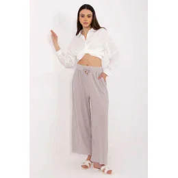 Tieto ležérne dámske nohavice sú kombináciou pohodlia a moderného štýlu. Sú vyrobené z mäkkej zmesi viskózy a polyesteru, perfektne sedia na postave a poskytujú pohodlie počas celého dňa. Hladký materiál a klasický strih zaručujú, že nohavice budú vyzerať skvele v každodennej štylizácii - či už do práce, na prechádzku alebo na stretnutie s priateľmi. Vysoký pás a šnurovací pás príjemne zvýrazňujú pás, zatiaľ čo široké nohavice dodávajú ľahkosť a voľnosť pohybu. Praktické bočné vrecká dodávajú tomuto modelu funkčný charakter.