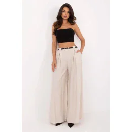 Štýlové, látkové nohavice palazzo pre ženy sú ideálnou voľbou na každodenné nosenie a do práce. Sú vyrobené z ľahkej a pohodlnej zmesi viskózy a nylonu, poskytujú pohodlie pri nosení a voľný, elegantný vzhľad. Model s hladkou štruktúrou a širokými nohavicami pôsobí mimoriadne ľahko a moderne. Vysoký pás s elastickou prednou časťou sa dokonale prispôsobí postave, zvýrazní pás a zabezpečí pohodlie počas celého dňa. Nohavice nemajú klasické zapínanie, čo ešte viac zvyšuje ich pohodlie pri nosení, a obsahujú zapínanie na opasok, ktorý zvýrazní pás a dodá celku elegantný vzhľad. Bočné vrecká s všitými vreckami zvyšujú ich praktickosť.