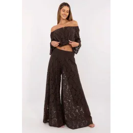 Elegantné korzetové nohavice typu palazzo sú štýlovým dizajnom pre ženy, ktoré oceňujú eleganciu a pohodlie. Vyrobené z jemnej čipkovej tkaniny na podšívke spájajú jemný pôvab s pohodlím pri každodennom nosení. Materiál zo zmesi bavlny a nylonu zaručuje, že sú ľahké, priedušné a príjemné na dotyk. Široké nohavice v štýle palazzo sa pri pohybe krásne usadia a dodajú postave ľahkosť a modernosť. Zapínanie bez gombíkov zaručuje pohodlné nosenie a hladké zakončenie v páse. Tento model je ideálny na rôzne príležitosti, do práce, na každodenné nosenie, ako aj na večierky alebo elegantné výlety. Štýlová čipková tkanina a klasická dĺžka vytvárajú ľahký wow efekt, stačí pridať jednoduchý top alebo elegantnú blúzku.