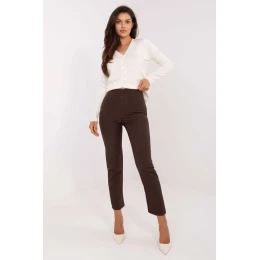 Tieto elegantné dámske cigaretové nohavice sú klasikou, ktorú možno nosiť v mnohých štýloch, či už na každodenný život, do práce alebo na spoločenské udalosti. Sú vyrobené z kvalitného polyesteru s prídavkom elastanu, čo zaručuje pohodlie pri nosení a jemne sa prispôsobia postave. Model s vysokým pásom krásne zvýrazňuje pás a zúžené nohavice predlžujú nohy, čím celku dodávajú elegantný charakter. Nohavice sa zapínajú na skrytý zips umiestnený na ľavej strane, čo zaručuje estetický a elegantný dizajn. Minimalistický, hladký strih z nich robí univerzálny základ pre mnohé elegantné a moderné outfity.