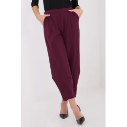 Pohodlné a štýlové látkové nohavice s ležérnym charakterom, ideálne na každý deň a do práce. Vyrobené zo zmesi viskózy, nylonu a elastanu, čo zaručuje pohodlie, pružnosť a elegantné rozloženie materiálu. Hladký, jednotný vzor je univerzálny a ľahko sa kombinuje s mnohými štýlmi. Model má vysoký pás, ktorý krásne zvýrazňuje pás, a elastický pás, ktorý zaručuje ideálne prispôsobenie a pohodlie pri nosení bez potreby zapínania, nohavice sú bez zapínania. Skrátené nohavice dodávajú siluete ľahkosť a opticky ju predlžujú. Na zvýšenie funkčnosti sú nohavice vybavené bočnými vreckami, ktoré zostávajú praktické a zároveň nenarušujú minimalistickú líniu celého modelu. Pohodlné, praktické a štýlové, ideálne na každodenné moderné štýly.