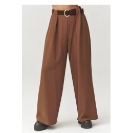 Dodajte svojmu šatníku štipku elegancie a pohodlia vďaka našim nohaviciam s vysokým pásom a širokými záhybmi. Ide o skvelú voľbu pre ženy, ktoré ocenia štýl a pohodlie. Sú vyrobené z kvalitnej tkaniny, ktorá krásne sedí a je ideálna na každodenné nosenie aj formálny styling, vďaka širokým nohaviciam a jemným záhybom nohavice opticky predlžujú postavu a ozdobný opasok so sponou im dodáva moderný charakter. Výborne sa hodia na kombinovanie s košeľou, sakom alebo objemným svetrom. Ide o ideálny model do práce aj na spoločenské stretnutia, ktorý vsádza na univerzálny, nadčasový strih a decentnú farebnosť, ktorá nikdy nevyjde z módy. Vyrobené v Taliansku.